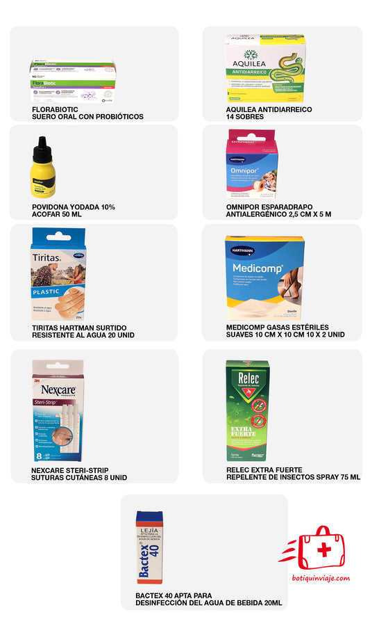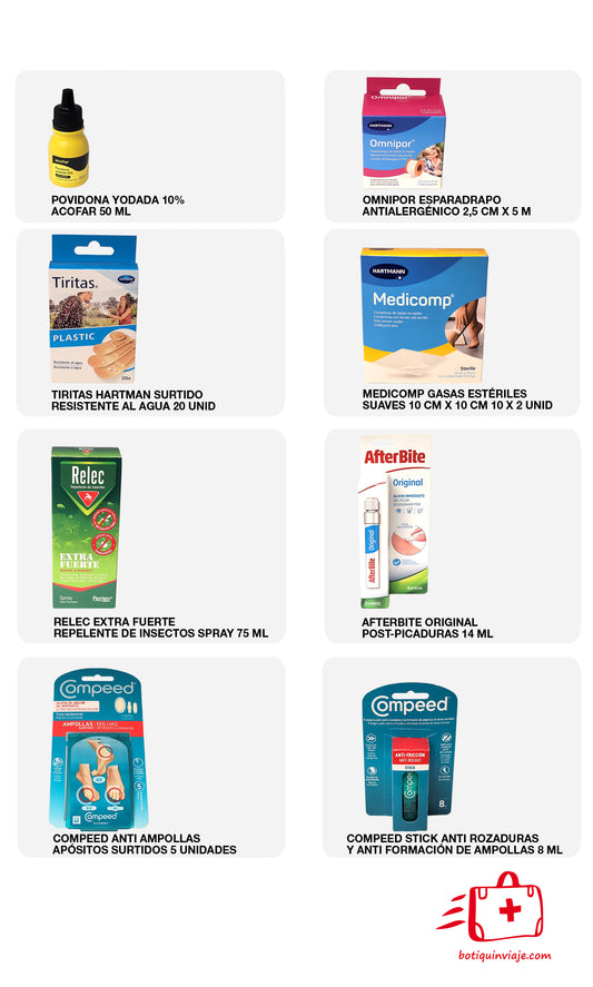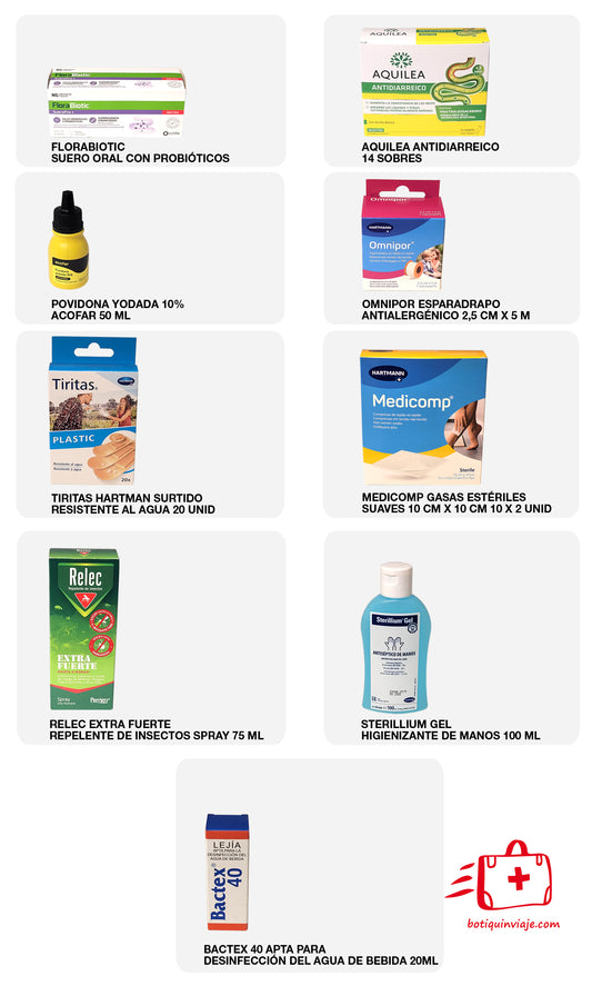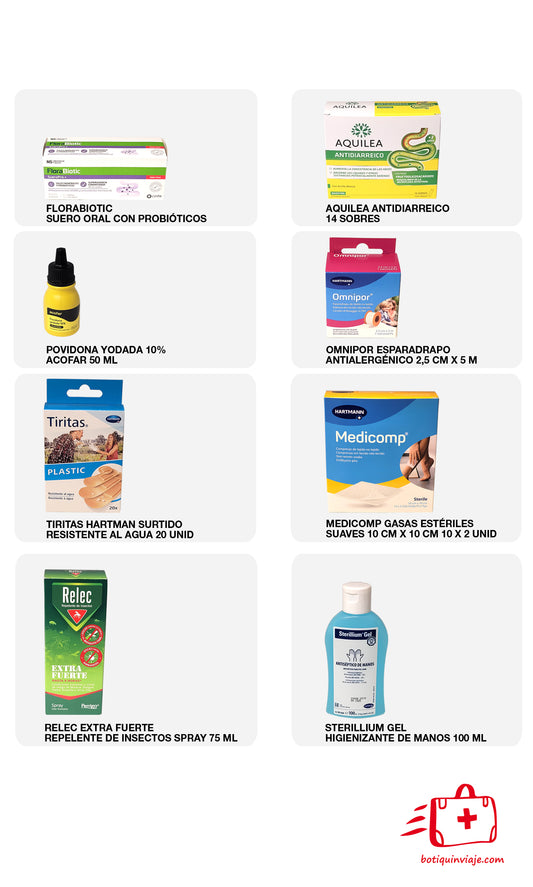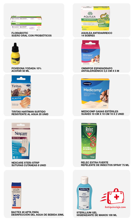 Además de conseguir el BOTIQUÍN DE VIAJE BÁSICO, podrás añadir más productos para completarlo. Para ello, haz clic en el botiquín según tu destino/actividad, o ve a la pestaña "todos los productos de un botiquín".